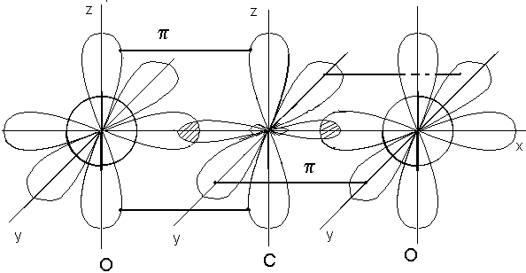 рис.2. схема строения молекулы СО2 Связь С=О обладает дипольным моментом 2,7D, однако линейная молекула СО2