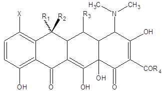 3. Тетрациклины являются антибиотиками широкого спектра действия, они активны в отношении грамположительных грамотрицательных бактерий, спирохет, лептоспир, риккетсий, крупных вирусов (возбудители трахомы, орнитоза). 4. Малоактивны или неактивны в отношении протея, синегнойной палочки, большинства грибов и мелких вирусов (гриппа, полиомиелита, кори и др.), недостаточно активны в отношении кислотоустойчивых бактерий. 5. В основе механизма антибактериального действия тетрациклинов лежит подавление ими биосинтеза белка микробной клетки на уровне рибосом; они блокируют связывание аа-тРНК на А участке рибосомы 70S. 6. Тетрациклины легко проникают через плацентарный барьер, поэтому препараты этой группы не назначают беременным женщинам. Вследствие возможного образования нерастворимых комплексов тетрациклинов с кальцием и отложения их в костном скелете, эмали и дентине зубов препараты этой группы нельзя, как правило, назначать детям до 8 лет. Отдельные представители:Таблица 2