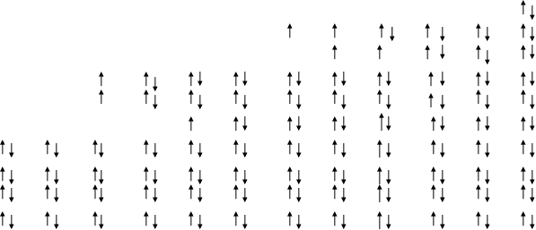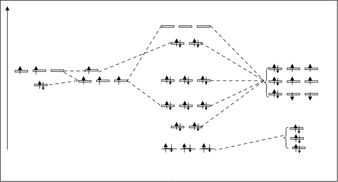 2.1.6. Основные принципы распределения электронов в атоме. Рассмотренная электронная оболочка атома заполняется электронами в соответствии трем принципам: принципу наименьшей энергии, принципу Паули /правилу/ Гунда. Принципу наименьшей гласит, что электрон в атоме занимает тот свободный подуровень, на котором он будут иметь минимальное значение энергии. По другому, электрон остается на том подуровне, на котором обеспечивается наиболее прочная связь с ядром. Последовательность заполнения подуровней соответствует приведенному выше фактическому расположению подуровней в структуре электронной оболочки атома: 1s2s2p3s3p4s3d –… и т.д. /см. выше/. Принцип Паули /запрет Паули/ говорит о том, что в атоме не может быть даже двух электронов с одинаковыми значениями четырех квантовых чисел. Следствие. На орбитале может находится два электрона с различными спинами (т.е. с различными значениями спинового квантового числа: ms = +1/2 и ms = –1/2). Третий принцип – это принцип или правило Гунда /Хунда/. Он объясняет порядок заполнения электронами квантового подуровня. В пределах подуровня электроны распределяются так, что их суммарное квантовое число имело максимальное значение /сначала по одному электрону на орбиталь, а затем спаривание/. Правильным будет распределение, например, трех р-электронов таким образом: