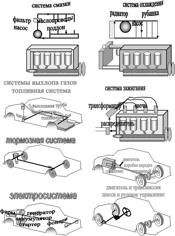 Штатив , биметаллическая стрелка, цилиндр, будильник, лист фольги. АВТОМОБИЛЬ – СРЕДСТВО ПЕРЕДВИЖЕНИЯ Задание: опишите назначение и принцип действия самых важных систем автомобиля, используя свои знания физики и химии. Какими свойствами должны обладать вещества, используемые в этих системах?