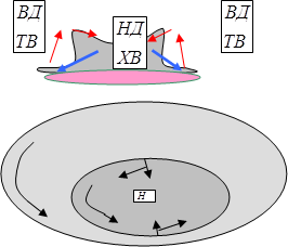30 20 10 -60 0 60 0 Т е м п е р а т у р а ( К) Задание 2: Из-за общего западного переноса воздушных масс для стран Балтики погода приходит с Запада. Над Исландией образуются циклоны и приносят дождливую погоду. Летом над Сахарой образуются антициклоны и приносят сухую погоду. На рисунке показана схема зарождения исландского циклона. Направление врашения циклона показано на горизонтальной проекции. Условно обозначены : ВД, НД – высокое и низкое давление атмосферы, ТВ, ХВ – тёплый и холодный воздух.