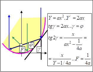 Задание 2 : доказать, что все точки плоской волны, после отражения её от параболоида, приходят в фокус одновременно.Если это так, то тогда сферические волны излучателя, отражаясь от параболоида, должны преображаться в плоские волны.