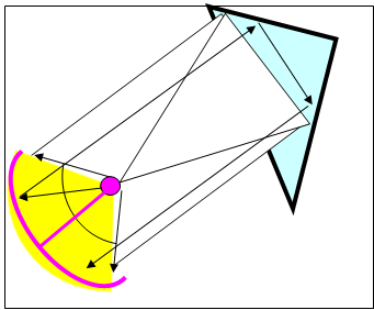 Задание 3 : На нижнем рисунке показан ход лучей от параболического отражателя к уголковому и обратно. Придумайте применение такого явления. Можно ли использовать уголковый отражатель для передачи информации на большое расстояние? Причём этот отражатель не имеет даже излучателя. Придумайте механический способ формирования информационных сигналов
