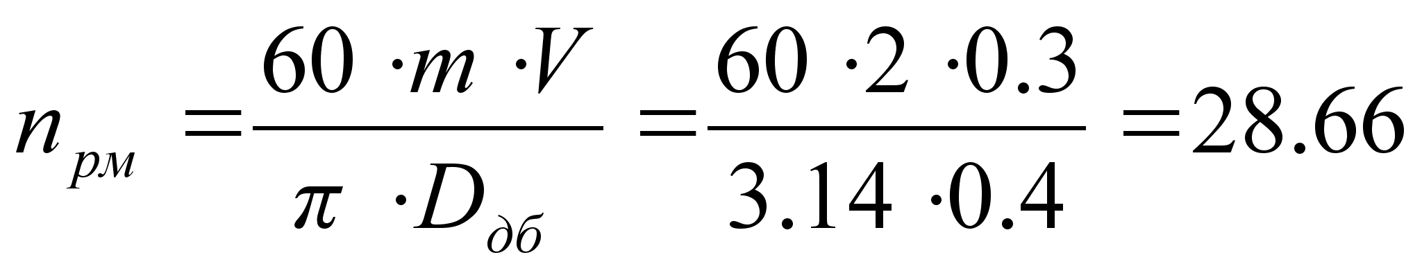 где m – число полиспастов (m=2); Dб – диаметр барабана (Dб=0.4 м) = 3.14 V – скорость поступательно движущегося элемента