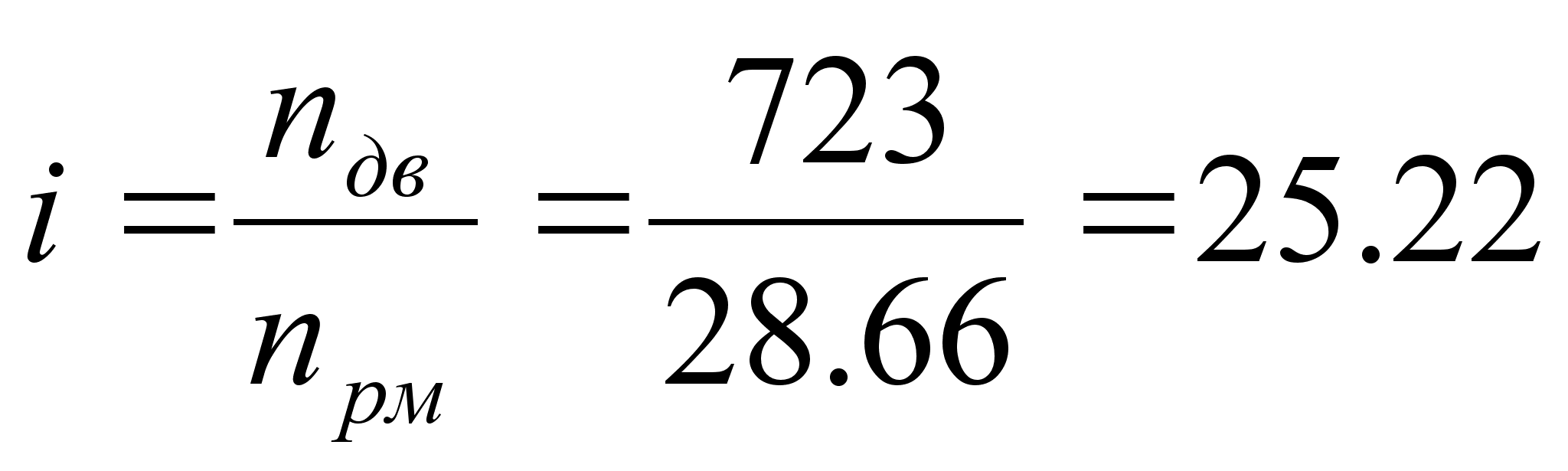 nдв- номинальная скорость вращения двигателя (об/мин) ; nдв= 723 об/мин. i – передаточное отношение