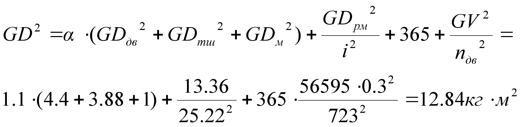 где: - коэффициент, учитывающий маховые массы редуктора (находится по каталогу). Обычно он лежит в пределах от 1.1 до 1.15. В данном случае принимаем = 1.1. GD2дв