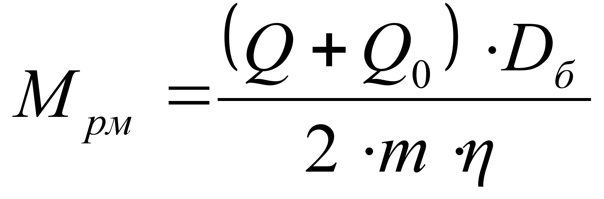 где k – поправочный коэффициент (k = 1.5); (Q+Q0) – вес груза с грузозахватным приспособлением; Dб – диаметр барабана; m – число полиспастов; i – передаточное отношение; - кпд привода.