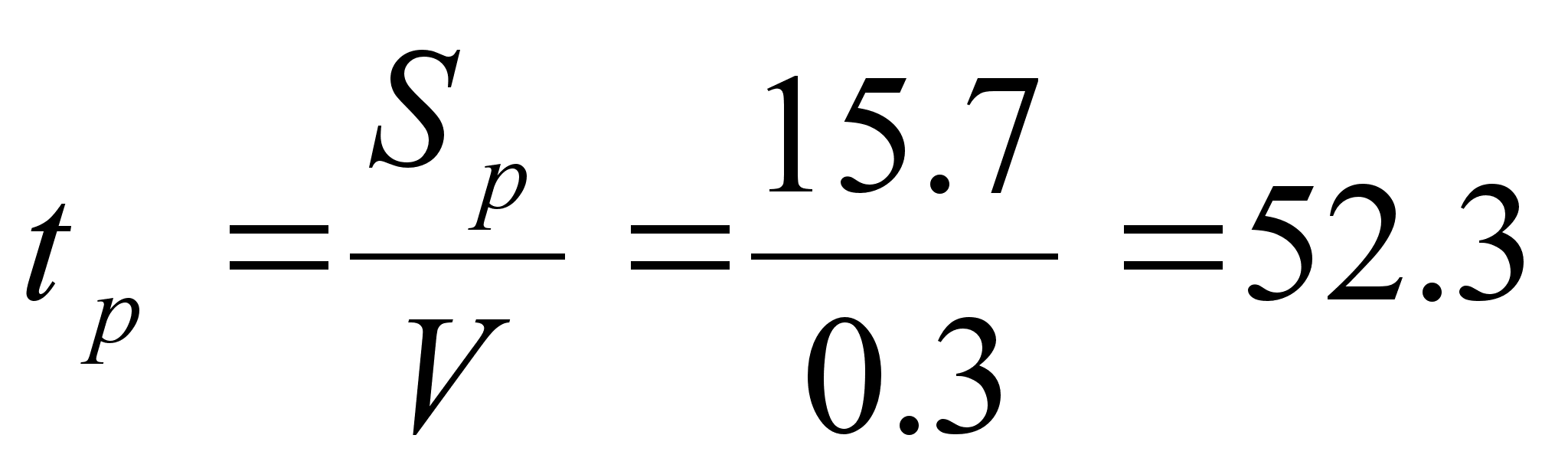 где Sp – путь, пройденный рабочим органом с установившейся скоростью (Sp = 15.7 м); V