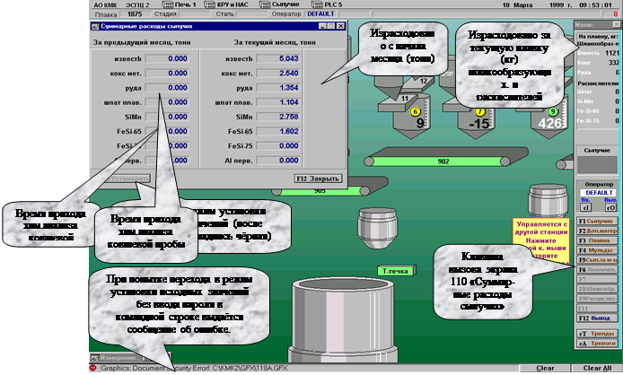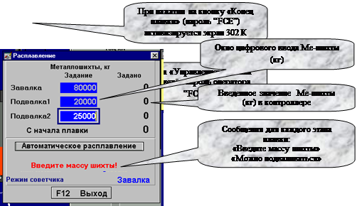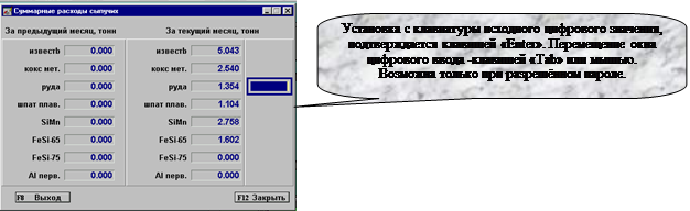 Попытка вызова на экран из меню, кнопки F8 – “Шлакообразующие” или F9 – “Раскислители”,