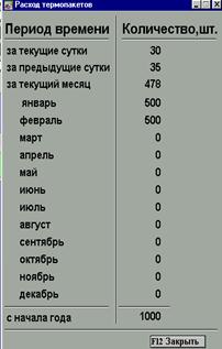 Экран « Расход термопакетов»