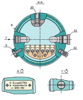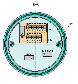 7. Настройка и проверка. Перенастройка на другой диапазон измерений, смещение «нуля» производится с помощью элементов ступенчатой и плавной настройки- перемычек и корректоров. Перестановка перемычек производится в процессе настройки преобразователя. Перестановку перемычек следует производить при отключенном питании преобразователя. Преобразователь настраивают в случае перенастройки на другой диапазон измерений, установки «нуля» со смещением более чем на 10% от диапазона измерений, в случае ремонта. Настройку преобразователя произвести следующим образом: Установить преобразователь в рабочее положение. Освободить доступ к корректору «нуля»и корректору диапазона, сняв табличку. Собрав схему присоединить к преобразователю линию для подачи давления. Линия должна содержать образцовый задатчик или задатчик и образцовый измеритель давления и, в случае необходимости, источник давления. Снять крышку и при необходимости перенастройки преобразователя в соответствии с выбранными значениями диапазона измерений и смещения «нуля», установить перемычки согласно таблицы. Включить питание, выдержать преобразователь во включенном состоянии 30 min (время подогрева электроники). Установить значение выходного сигнала, соответствующее нижнему предельному значению, и установить с помощью корректора «нуля» соответствующее ему значение выходного сигала. Если корректор «нуля» не обеспечивает достижение заданного значения выходного сигнала, необходимо поменять положение перемычки на соответствующее соединение, отключив на это время питание. Настроить диапазон измерение выходного сигнала, для чего увеличить измеряемое давление диапазона соответствующее ему предельное значение выходного сигнала. Если корректор диапазона не обеспечивает достижение заданного диапазона изменения выходного сигнала, необходимо поменять положение перемычки на соответствующее соседнее, отключив на это питание. Уменьшить измеряемое давление до нижнего предельного значения и с помощью корректора «нуля» вновь установить значение выходного сигнала, соответствующее этому давлению. Выполнить операции по п. 6, 7, 8 несколько раз, пока предельные значения выходного сигнала не будут установлены с требуемой точностью. При нижнем и верхнем предельных значениях измеряемого параметра значения выходного сигнала должны быть равными соответствующим предельным значениям. Например, при смещении диапазона измерений на минус 10% у преобразователей с возрастающей характеристикой выходного сигнала точкам минус 10% и плюс 90% должны соответствовать значения выходного сигнала 0 и 5 mA или 0 и 20 mA или 4 и 20 mA, при этом верхний предел измерений не должен превышать максимального значения, предусмотренного для данной модели. Поставить на место крышку и табличку. Проверить основную погрешность преобразователя в соответствии с указаниями. После перенастройки преобразователя на другой диапазон измерений, с пределами предусмотренными для данной модели, основная погрешность и вариация выходного сигнала не должны превышать значений, предусмотренных для соответствующих пределов измерений. Для преобразователя, настроенного на смещенный диапазон измерений, со смещением на 10 и более процентов от верхнего предела измерений, основная погрешность, выраженная в процентах от в