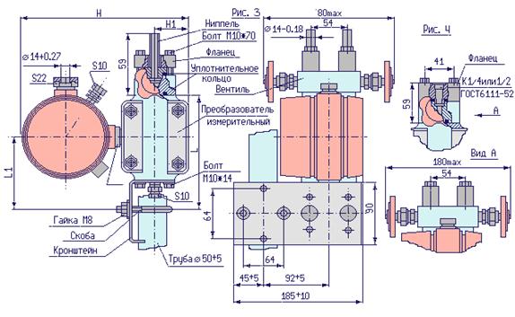 5. Техническое обслуживание. К обслуживанию преобразователей должны допускаться лица, изучившую инструкцию и прошедшие соответствующий инструктаж. При эксплуатации преобразователей должны руководствоваться настоящей инструкцией4 местными инструкциями и другими нормативно-техническими документами, действующими в данной отрасли промышленности. Техническое обслуживание преобразователей заключается, в основном, в периодической проверке и, при необходимости, корректировке «нуля» преобразователя, в сливе конденсата или удаления воздуха из рабочих камер преобразователя, проверке технического состояния преобразователя. Методические характеристики преобразователя в течение межповерочного интервала соответствуют установленным нормам с учетом показателей безотказности преобразователя и при условии соблюдения потребителем правил хранения, транспортирования и эксплуатации. Необходимо следить за тем, чтобы трубки соединительных линий и вентили не засорялись и были герметичны. В трубках и вентилях не должно быть пробок жидкости (при измерении давления газа) или газа (при измерении давления жидкости). С этой целью трубки рекомендуется периодически продувать, не допуская при этом перегрузки преобразователя; периодичность устанавливается потребителем в зависимости от условий эксплуатации. В процессе эксплуатации преобразователи должны подвергаться систематическому внешнему осмотру, а также периодическому осмотру, ремонту. При внешнем осмотре необходимо проверить: целостность оболочки, отсутствие на ней коррозии и других повреждений; наличие всех крепежных деталей и их элементов, наличие и целостность пломб; наличие маркировки взрывозащиты и предупредительных надписей у преобразователей Сапфир-22ДД-Вн; состояние заземления, заземляющие болты должны быть затянуты, на них не должно быть ржавчины. В случае необходимости они должны быть очищены; состояние уплотнения кабеля. Проверку производить при отключенном от сети кабеле. Кабель не должен выдергиваться и не должен проворачиваться в узле уплотнения. Эксплуатация преобразователей с поврежденными и другими неисправностями категорически запрещается. При эксплуатации преобразователей Сапфир-22ДД-Вн необходимо руководствоваться подразделом «Обеспечение взрывозащищенности при монтаже» инструкции по эксплуатации, действующими «Правилами устройства электроустановок», главой ЭШ-13 «Электроустановки взрывоопасных производств», утвержденной Госэнергонадзором в 1971г., «Правилами технической эксплуатации электроустановок потребителей и правилами технки безопасности при эксплуатации электроустановок потребителей», утвержденными Госэнергонадзором в 1971г. 6. Монтаж прибора. Преобразователи должны устанавливаться в помещениях и наружных установках согласно указаниям в разделе «Назначение». Прежде чем приступить к монтажу преобразователей, их необходимо осмотреть. При этом необходимо обратить внимание на: наличие всех крепящих элементов (болтов, гаек, шайб); наличие средств уплотнений для кабеля и крышек; маркировку взрывозащиты (для преобразователей Сапфир-22ДД-Вн); наличие заземляющих и пломбировочных устройств. При выборе места установки необходимо учитывать следующее: преобразователи Сапфир-22ДД-Вн-А, Сапфир-22ДД-Вн-К нельзя устанавливать во взрывоопа