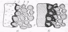 И.Б. Куманиным предложена классификация пригара (табл.4) в основу которой положено представление о том, что пригар всегда состоит из зерен наполнителя, сцементированных затвердевшей жидкостью. Этой жидкостью могут являтся металл или его окислы, проникшие в поры формы, или легкоплавкие соединения и сплавы, образовавшиеся в результате взаимодействия между окислами металла и формовочными материалами, или, наконец, жидкое вещество может возникнуть в самом формовочном материале за счет расплавления примесей, входящих в его состав, или же за счет образования легкоплавких силикатов.