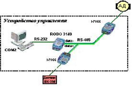 Рис. 6.1. Функциональная схема устройства управления. Электрическая схема подключения датчика ВК-2М к модулю I-7012 представлена на рис. 6.2.