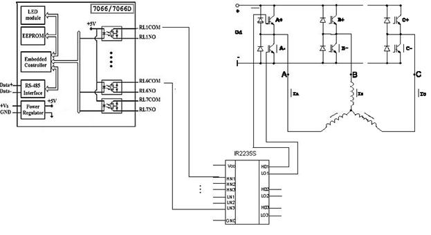 В качестве исполнительного механизма в данном случае используются АД, управление которым осуществляется посредством АИН который в свою очередь управляется ШИМ через специальную микросхему драйвер IR2235S. В соответствии с этим выбран модуль I-7066, характеристики которого приведены в таблице 3. Таблица 3. Модуль I-7066
