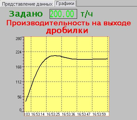 Окно переходных процессов (рис. 7.2) носит вспомогательный характер и отражает динамику процесса регулирования производительности дробилки.