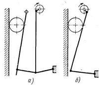 Рис. 2.1. Кинематические схемы щековых дробилок: а — с простым движением щеки; б — со сложным движением щеки