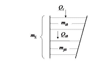 Рис. 4.2. Физическая модель процесса дробления в щековой дробилке Физическая модель такого процесса дробления приведена на рис. 4.2. Исходя из принципа разделения запаса материала на две зоны и применения к отдельным зонам выражения материального баланса (4.1), учитывая при этом функциональную зависимость между производительностью и полным запасом материала