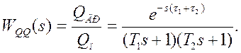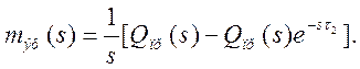 В разобранной структурной схеме щековой дробилки не учитывается чистое запаздывание, физическая природа которого связана с временем свободного падения горной массы с питателя в камеру дробления τ1 и временем свободного падения дробленого материала на конвейер, транспортирующий продукт, τ2. Однако это запаздывание необходимо учитывать. Пренебрегая изменением уровня материала на конвейере и запасом материала в камере дробления, можно принять τ1 и τ2 постоянными. С учетом выражений (4.3) и (4.4) можно записать: