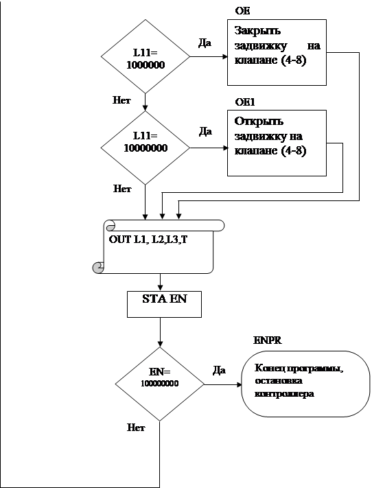 ЗАКЛЮЧЕНИЕЦель данной курсовой работы была разработка программного обеспечения программируемого контроллера для управления технологическим процессом розлива минеральной воды. Курсовая работа состоит из трёх этапов. На первом этапе описали технологический процесс. На втором этапе разработали автоматизацию технологического процесса: функциональную схему автоматизации технологического процесса, произвели выбор средств автоматизации. Сигналы с датчиков и преобразователей поступает на контроллер, который вырабатывает управляющие сигналы. На третьем этапе подробно рассмотрели функции контроллера и подготовили программу для его программирования. Команды, используемые в программе, предназначены для микропроцессора INTEL 8085A. Программирование контроллера можно произвести посредством других языков, составив алгоритм на основе представленной программы. |