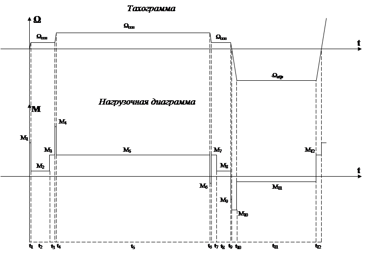 3.4 Проверка двигателя по нагревуДля проверки двигателя по нагреву используем метод эквивалентного момента. Используя нагрузочную диаграмму находим эквивалентный по нагреву момент за цикл работы привода. Для нормального теплового состояния двигателя необходимо, чтобы эквивалентный момент был не больше номинального момента двигателя. Эквивалентный момент за цикл работы: