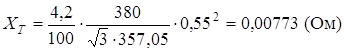 Индуктивное сопротивление обмоток одной фазы трансформатора: