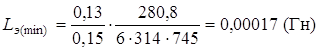 Минимальная суммарная (эквивалентная) индуктивность якорной цепи по условию ограничения пульсаций выпрямленного тока: