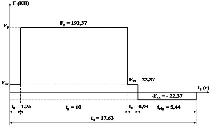 3.2 ПРЕДВАРИТЕЛЬНЫЙ ВЫБОР ДВИГАТЕЛЯПри расчете мощности двигателя полагаем, что номинальной скорости двигателя соответствует скорость обратного хода стола (наибольшая скорость механизма), т.к. принято однозонное регулирование скорости, осуществляемое вниз от номинальной скорости. Ориентируемся на выбор двигателя серии Д, рассчитанного на номинальный режим работы S1 и имеющего принудительную вентиляцию. Эквивалентное статическое усилие за цикл: