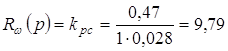 Контур скорости образуется регулятором скорости, контуром регулирования тока якоря. звеном умножения на поток, звеном механической части привода и обратной связью по скорости через датчик скорости (kдс = 1). На объект действует возмущающее воздействие - момент статического сопротивления. 8.2 расчет регулятора скоростиВ однократной САР скорости, по условия настройки на модульный оптимум, регулятор скорости имеет передаточную функцию пропорционального звена: