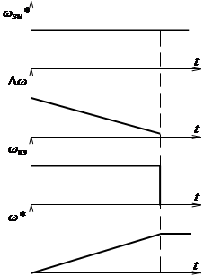 и на вход интегрирующего звена поступает неизменная величина ωнэ