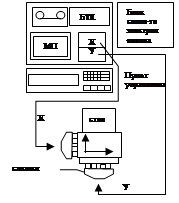 Кулачки (муз. Шкатулка): Физическим носителям информации свойственны 2 недостатка: 1. Информация чертежа детали из цифровой превращается в аналоговую в виде сложной криволинейной поверхности, это преобразование связано с потерей информации, а такая материальная форма связана с износом программы-носителя. 2. Необходимо изготавливать программы-носители в металле с высокой точностью, и останавливать оборудование на длительный период для осуществления его наладки. Цифровые системы электронного управления: ЧПУ - такая система, в которой программа перемещения рабочих органов и технологии команды передаются в управляющую ЭВМ в виде цифровых алфавитных кодов. Система ЧПУ на всем пути подготовки передачи информации имеет дело только с цифровой ее формой. Эта форма информации позволяет применять все современные средства микропроцессорной техники, т.е. автоматизировать подготовку самой программы, и быстро менять программное управление. Переналаживание на новую программу станка ЧПУ занимает 1-2 мин. ! Генеральное направление современного прогресса -замена всех мех. систем электронными и создание единого цифрового поля. Конструктивно ЧПУ представляет автономный электронный агрегат, состоящий из: БТК - блок технологических команд; МП - микропроцессор управляет двумя координатами (сейчас до 20).