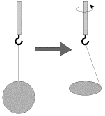 В телах вращения устойчивой оказывается свободная ось, соответствующая наибольшему моменту инерции. Так, если сплошной однородный диск подвесить к быстровращающемуся валу электромотора (рис. 3.8, ось вращения вертикальна), то диск довольно быстро займет горизонтальное положение, устойчиво вращаясь вокруг центральной оси, перпендикулярной к плоскости диска.