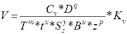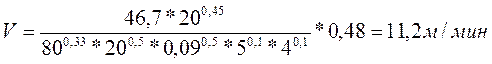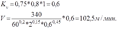 По табл. 17 стр. 269 [4] определяем значение коэффициента и показатели степеней. x = 0,15, у = 0,45, m = 0,2 Т – стойкость инструмента (резца) 60 мин. без переточки.