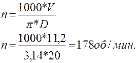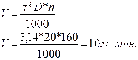 2. Определяем подачу, по табл. 11 стр. 266 [4] S = 0, 6 – 1, 2 об/мин По паспорту станка принимаем: S = 0, 6 мм/об. 3. Определяем скорость резания по формуле: