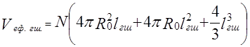 Розглянувши ГШ, як сферичний прошарок товщини lгш отримаємо, що ефективний об’єм ГШ полімерної системи, що містить N частинок наповнювача, буде рівним: