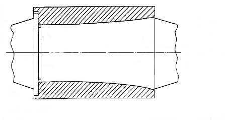 (63) (64) Полный прогиб бандажированного валка: y=yx + yш = 0,000622 м = 0,622 мм (65) Как видно из результатов расчетов, прогибы составного и сплошного валков под нагрузкой практически одинаковы. Прогиб составного валка немногим более прогиба цельного (yсплошного = 0,474 мм, yсост = 0,622 мм). Это говорит о том, что жесткость составного валка ниже, вследствие чего бандаж может скользить относительно оси. Расчеты, в свою очередь, показали, что зона проскальзывания невелика и составляет всего 0,045 м. На величину зоны проскальзывания и жесткость валка в целом влияют окружные растягивающие напряжения во втулке t (в соответствии с рисунком 13). Эксперименты, проводимые для исследования жесткости составных прокатных валков [19] позволили увидеть, что наибольшие растягивающие напряжения t расположены на внутреннем контуре бандажа в области его контакта с валом; это указывает на возрастание контактных давлений от посадки при изгибе валка. Установлено, что уменьшение относительного натяга снижает напряжение t. Следовательно, уменьшением натяга прессового соединения можно устранить разрушение бандажа, однако, это приводит к потере жесткости вала, ослабляет прессовое соединение, расширяет область проскальзывания бандажа и способствует фреттинг-коррозии посадочной поверхности. Так как для расчетов выбрано минимальное значение натяга (=0,8 мм), то для улучшения сцепления вала с бандажом нужно повысить коэффициент трения на посадочной поверхности, например, при помощи нанесения металлического покрытия. 2.9 Разработка мероприятий для предотвращения фреттинг – коррозии на осадочных поверхностях и повышения поверхности валкаФреттинг – коррозия – повреждение металлической поверхности в результате контактного трения, при котором отделенные частицы и поверхностные слои взаимодействуют с компонентами окружающей среды (наиболее часто с кислородом). Известно, что при самых незначительных нагрузках на соприкасающихся поверхностях могут возникать заметные повреждения поверхностных слоев от фреттинга. Это в полной мере относится и к составным прокатным валкам, собранным по посадке с натягом, в которых контактные давления достигают значительных величин и имеются зоны проскальзывания, прилегающие к торцам бандажа. В местах сопряжения при знакопеременных смещениях посадочных поверхностей оси и бандажа образуются задиры, количество которых увеличивается почти пропорционально напряжению натяга. В последствии они переходят в концентраторы напряжения, что вызывает ускоренное усталостное разрушение оси, располагающейся на некотором расстоянии от торца бандажа по посадочной поверхности. Как правило, в конструкциях валков, где выражена фреттинг-коррозия, разрушение происходит здесь, а не по шейке. С целью уменьшения влияния этого процесса на торцах оси, выполняются разрушающие фаски, чтобы повысить надежность оси за счет снятия концентраторов напряжений, которые на краю сопряжения становятся равными нулю (рисунок 14). Рисунок 14 – Скосы на краю оси бандажированного валка Однако без специальных видов обработок посадочных поверхностей не удается избежать поломок осей по этой причине. Наиболее эффективны в этом случае мягкие гальванические покрытия. Применение их значительно увеличивает площадь фактического контакта сопряжения. При этом в контакте сопряг