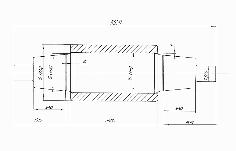 Исследование и разработка конструкции бандажированного опорного валка стана 2500 горячей прокатки2.1 Выбор натяга, формы, толщины бандажа и расчет несущей способности соединенияОпорный валок 5,6 клетей стана 2500 горячей прокатки ОАО ММК в соответствии с рисунком 4 имеет следующие основные размеры: