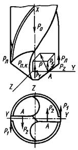Суммарный момент сил резания Мс=Mz+Mп.к+Мл, где Mz=(0,8-0,9) Mc-момент, создаваемый силой Рz, Мп.к - момент, создаваемый силой Рп.к; Мл - момент, создаваемый силой Рл. При сверлении отверстий по мере износа сверла по задней поверхности осевая сила и крутящий момент увеличиваются; например, при износе задней поверхности сверла на 1 мм указанные параметры возрастают почти на 60-80%.