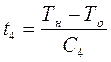 Найдём значения времени для каждой операции: t1 = (520 – 25)/3300; t1 = 0.15 мин t2 = 10 + 10*0.12; t2 = 10.1 мин t3 = (520 – 410)/825; t3 = 0.13 мин t4 = (410 – 25)/5500; t4 = 0.07 мин Следовательно, общее время обжига можно рассчитать по формуле: