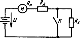 измерения сопротивлений. С этой целью в прибор вводят добавочный резистор с