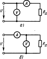 средних сопротивлений, а одним вольтметром измеряют также большие сопротивления.