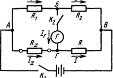 Рис. 7 Наиболее точные результаты при измерении сопротивлении дают мостовые схемы, которые в практике применяют в различных вариантах в зависимости от величин измеряемых сопротивлений и требуемой точности измерения. Чаще других можно встретить прибор, построенный по