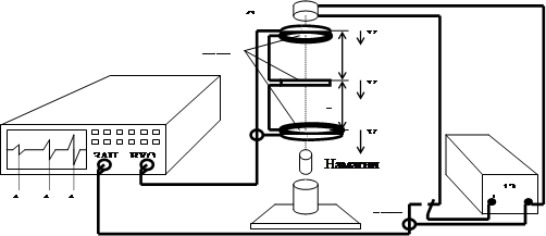 Реферат: Измерение ускорения свободного паденияРеферат: Измерение ускорения свободного паденияМИНИСТЕРСТВО ОБЩЕГО И ПРОФЕССИОНАЛЬНОГО ОБРАЗОВАНИЯ РОССИЙСКОЙ ФЕДЕРАЦИИ НОВОСИБИРСКИЙ ГОСУДАРСТВЕННЫЙ УНИВЕРСИТЕТ Физический факультет Кафедра общей физики. Крайнов Александр Владимирович ОТЧЕТ о лабораторной работе «Измерение ускорения свободного падения» Измерительный практикум. 1 курс. Группа 7331 Преподаватель измерительного практикума __________________А. М. Оришич «_25_»_ноября_1997 г. Преподаватель компьютерного практикума __________________ В.Г. Казаков «_25_»_íîÿáðÿ__1997 г. Новосибирск. 1997 г. Аннотация Производились измерения ускорения свободного падения путем бросания маленького магнита через 3 соленоида. Когда магнит пролетает через катушки создается ЕДС индукции ,что фиксируется прибором (цифровым осциллографом),так же фиксируется время когда магнит залетает в катушку и время , когда магнит вылетает из нее . Таким образом , зная расстояния между катушками ,можно определить ускорение свободного падения (далее называется « G» ) 1. ВведениеЦель : 1) Ознакомиться с устройством цифрового осциллографа и приобретение навыков работы с таким прибором. 2) Измерение ускорения свободного падения. 3) Анализ ошибок. 2. Описание экспериментаКогда выключатель включен, то поле в катушке удерживает магнит от падения. Когда размыкаешь цепь, то поле исчезает, то под действием силы тяжести магнит начинает падать с ускорением g . А в это время осциллограф переходит в другой режим работы, а именно он запоминает график зависимости напряжения от времени. 2.1. Методика измеренийВ качестве рабочего тела намагниченный металлический стержень в качестве датчиков напряжения - катушки. При падении магнит проходит через катушки , в которых наводится ЭДС ( закон Фарадея). Измерив расстояние между катушками и время между импульсами , из известных формул движения тела в поле тяжести , можно вычислить G. 2.2. Описание установкиДля измерения временных интервалов в данной работе применяется цифровой осциллограф. После визуализации электрических импульсов с датчиков на дисплее осциллографа с помощью маркера и цифрового табло удобно произвести измерения времени между импульсами. В осциллографе С9-10 имеются два маркера , которые перемешаются по экрану , управляющие переключателя , расположенные под матричным экраном .