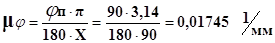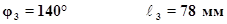 де: С0С3 – відстань між мертвими положеннями; Y3 - відстань на осі ординат на графіку, відповідаючи відстані між мертвими положеннями. Кути повороту отримані при побудові положень механізму, перераховуємо за формулою у довжині