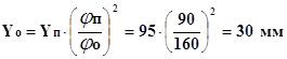 де: Х – довільний відрізок вздовж вісі абсцис. Цей відрізок розбиваємо на три ділянки Хп, Хс та Хо, пропорційно кутам повороту φп, φс, φо. Відрізки Хп та Хо розбиваємо на вісім рівних частин. На відрізку Хп , задаємося амплітудою Yп=95 мм. Визначаємо амплітуду на відрізку Хn: