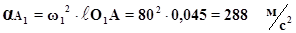 Так як куліса рухається поступально, то ω2 не буде. 1.5 Визначення прискорення точок та кутове прискорення ланок. Розглянемо прискорення точок та кутове прискорення ланок на прикладі першого положення. Визначаємо прискорення точки А: