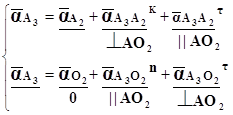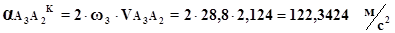 де: αA3A2K – відносне каріолісове прискорення точки А3 αА3А2τ, αА3О2τ – відносне тангенціальне прискорення точки А3
