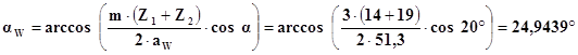 Визначимо кут зачеплення: