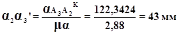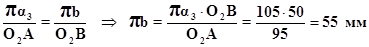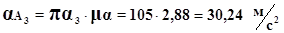 На плані (креслення №1) з точки α3 відкладаємо перпендикулярно ланці АО2 відрізок α2α3’ і з кінця якого проводимо паралельно до АО2 промінь. З полюса паралельно АО2 відкладаємо відрізок πα3’’, з кінця якого проводимо перпендикуляр до АО2 і на перетині променя проведеного з точки α3’ і з точки α3’’ ми отримуємо точку α3 , з’єднавши її з полюсом ми отримаємо графічний аналог прискорення точки А3. Знаходимо дійсне прискорення точки А3: