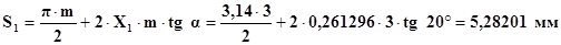 Визначаємо ширину зубців по ділильному колу: